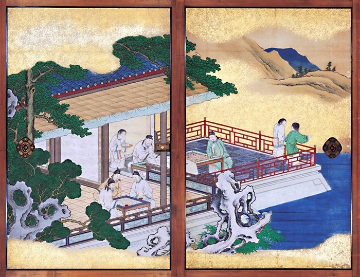 十八学士登瀛州(とうえいしゅう)図(狩野永岳筆)=御学問所上段の間