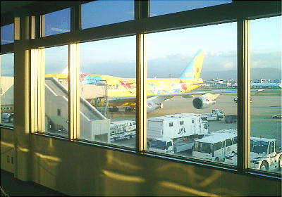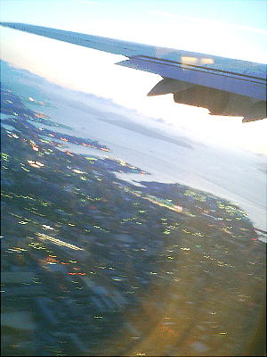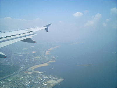 伊丹を飛び立って、神戸の新埋立地群(上右:ポートアイランド、六甲アイランドなど)を見ながらうとうとすると、アッ