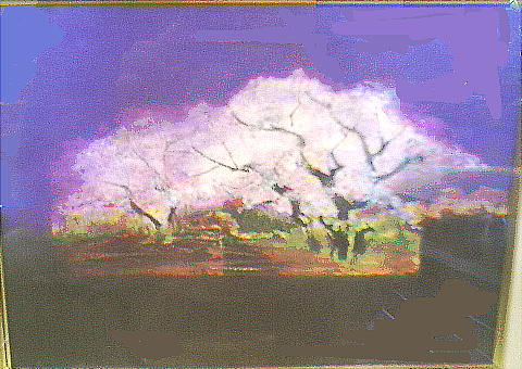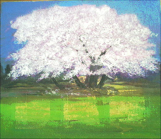 桜の花の白さが幻想的な雰囲気を出している。なんとかこの絵がほしいと思って先生に値段を聞いたが、サラリーマンが