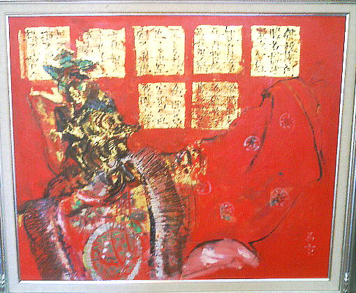 しかし先生の真骨頂は、やはりこの燃えるような赤と金にある。ブルーを基調とした静かな静物や風景もいいが、なんと