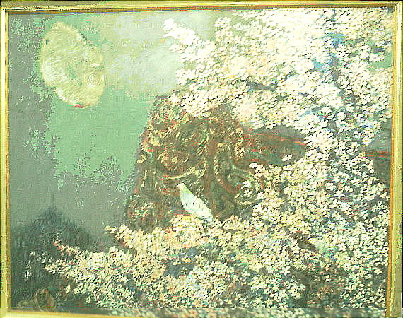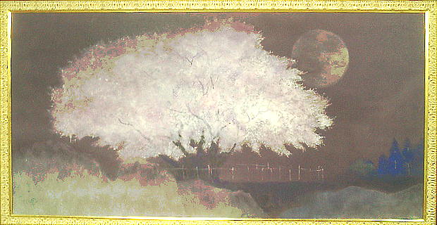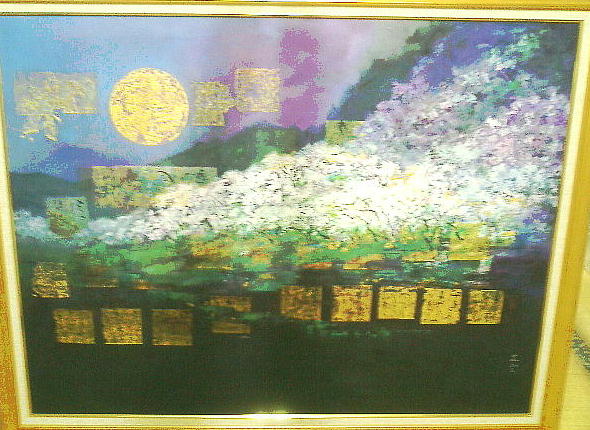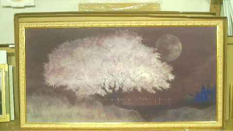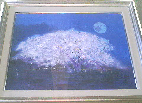 これが、私の好きな一心業の桜の大作(100号)である。この絵は最高だ。月明かりと、どこかからの光を透かして、