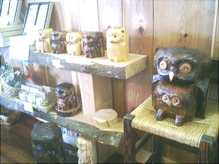 久間さんが本業(茶業)の合間に彫っているという木彫りのふくろうがズラリと並んでいる。「まだまだ修行中です。」