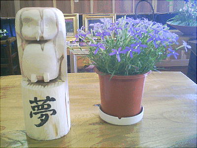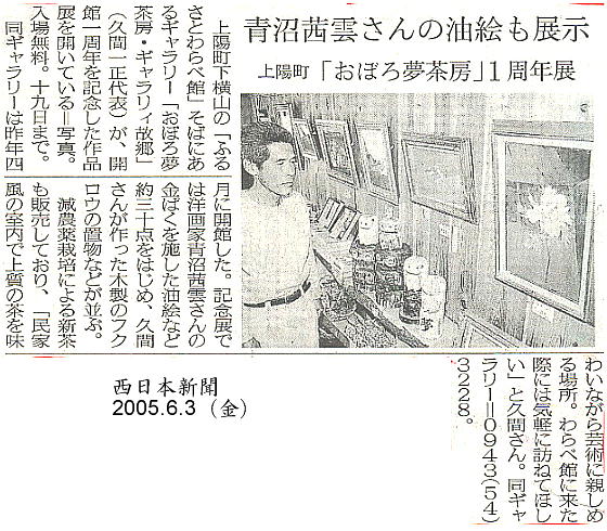 青沼先生が学校の先生時代に教え子だった久間さんが、(福岡県)八女郡上陽町で「おぼろ夢茶房」という喫茶店兼特産品