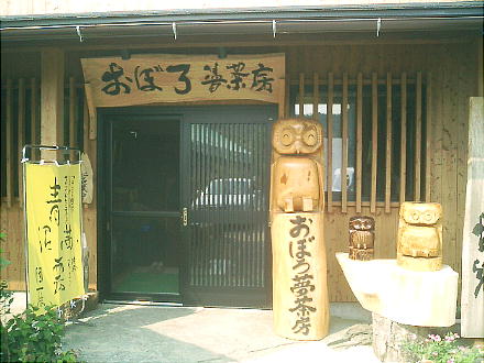 ろう。九十九折れの山道を幾度も曲がって、やっと「おぼろ茶屋」に着いた。山間(やまあい)の、目の前に深い谷を抱え