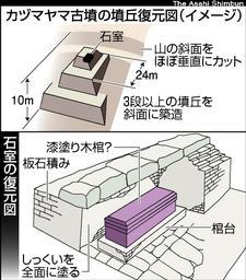 成し、そこから突き出す形で、土を何層もたたき固めて墳丘を造っていた。墳丘は少なくとも高さ約10