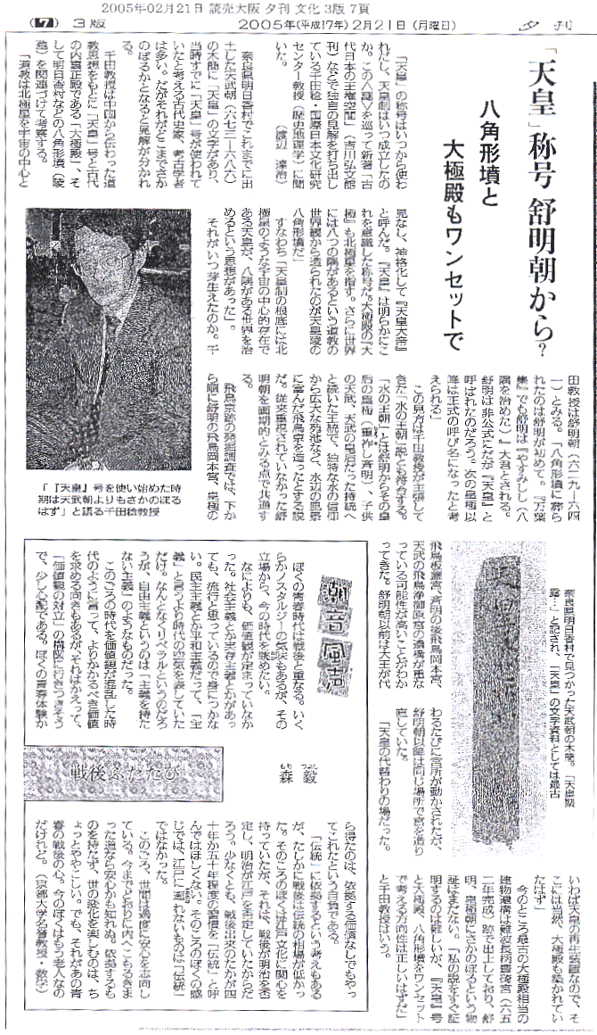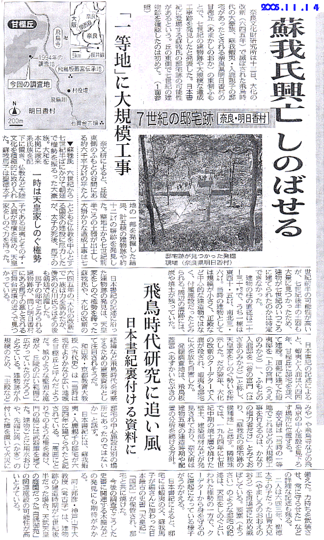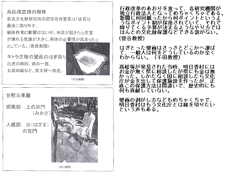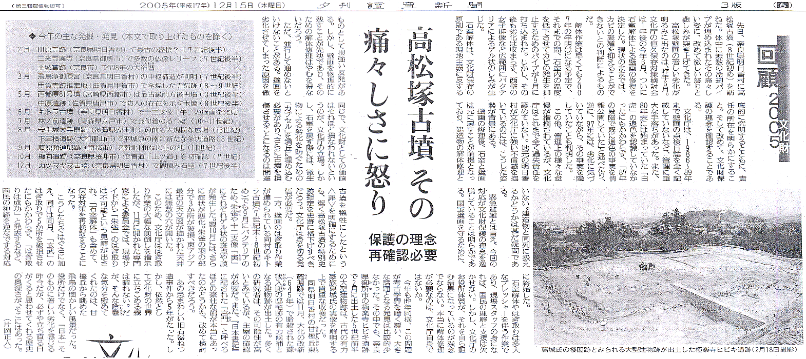 上をクリックして貰えば、讀賣新聞片岡正人記者による「回顧2005年文化財」記事が読めます。高松塚古墳の文化