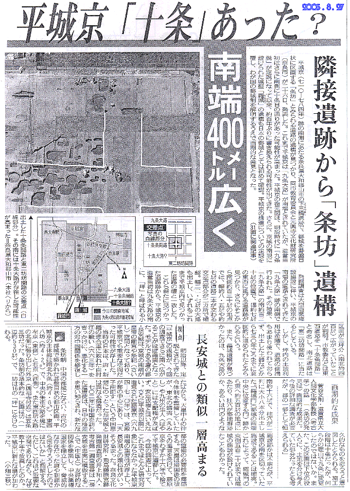 平城京の羅城、簡略版か 十条大路があったのは確実 2006年03月10日23時31分 asahi.com