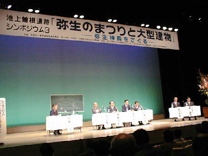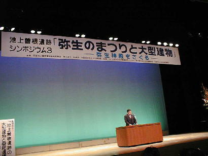 このシンポジウムは、池上曽根遺跡の状況を見て、弥生時代のまつりと大型建築物の用途をさぐろうとするものであった。