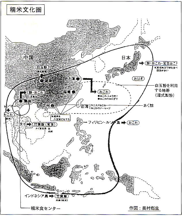 ◎これに反して東の方は、稲には「稲の神」が宿ると信じられ、主食となっている。米はきれいにクリーニングし、東南