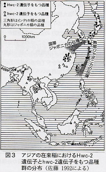 Hwc-2 は晩生の温帯ジャポニカとして中国から、hwc-2 は熱帯ジャポニカとして南の島々から伝来したと主張した。