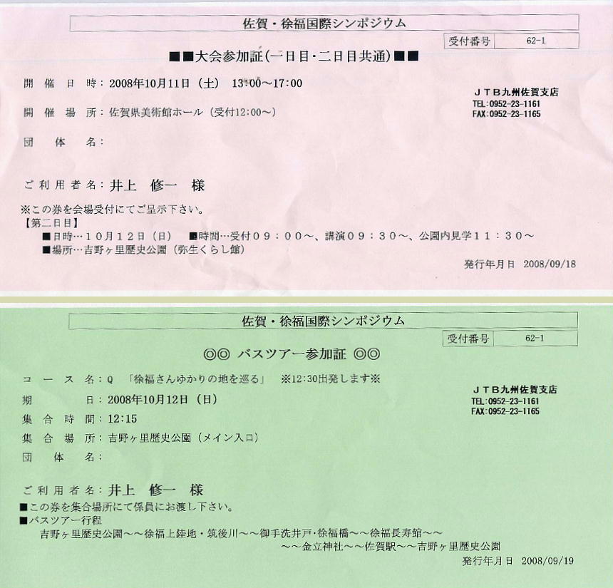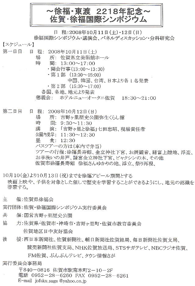 2008年10月11日‐12日、佐賀市において「佐賀県徐福会」主催の「佐賀・徐福国際シンポジウム」が開催された。韓国に住む高木さん