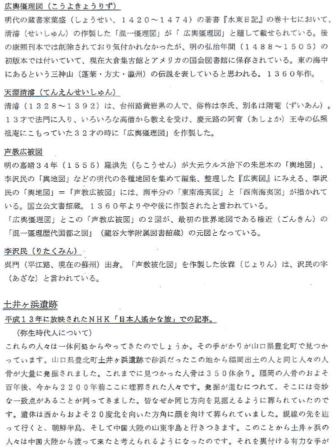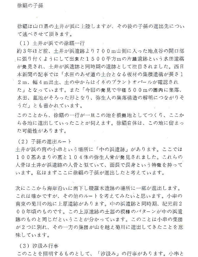「徐福祠」が山口県の「土井が浜」にあると記されている地図である。後段のワープロ資料は高木さんの「徐福伝説」に対する考察。