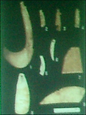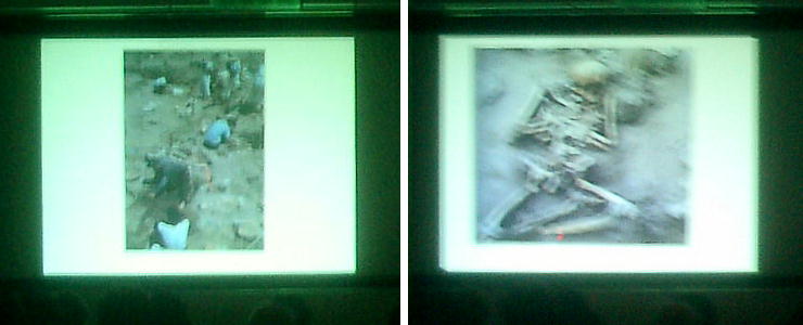 ※この埋葬遺構からは,更に体に突き刺さったと見られる石のやじり(石鏃)が見つかっている。ほぼ同じ時期の埋葬遺跡
