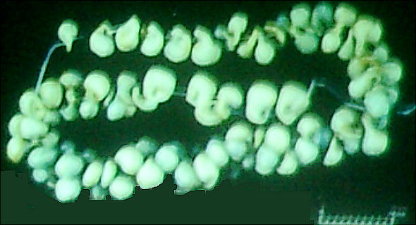 ※この乳幼児の墓からは,ガラスの小さな玉と貝の小玉で作られたネックレス状のものが見つかっていて,幼くして亡くな