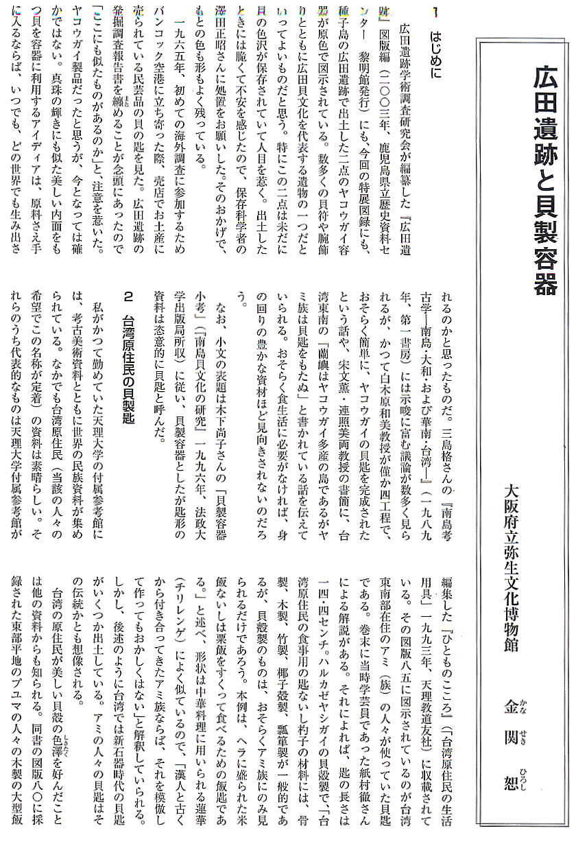 これらの貝製品の形状や文様は、南島文化との関連性を示唆している、貝製品の中には広田遺跡特有のものも多く、広田遺跡の人