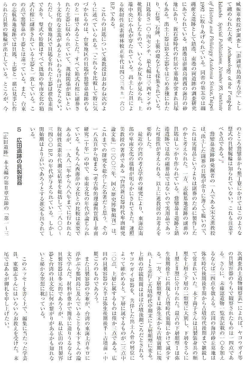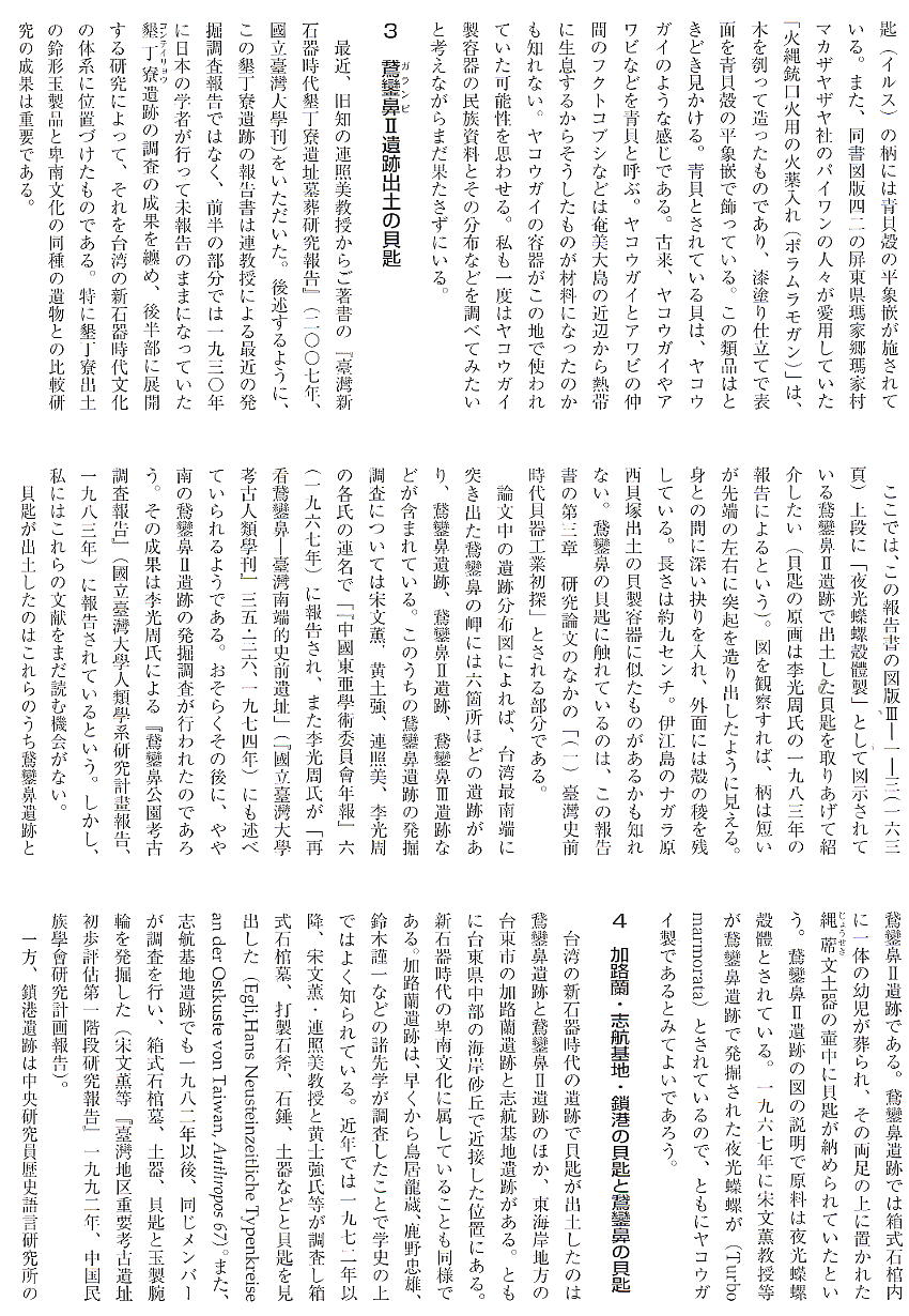 ことないような貝の製品を伴う墓地遺跡であることが判明した。発掘調査は、昭和32年に第一次調査を盛園尚孝・国分直一氏