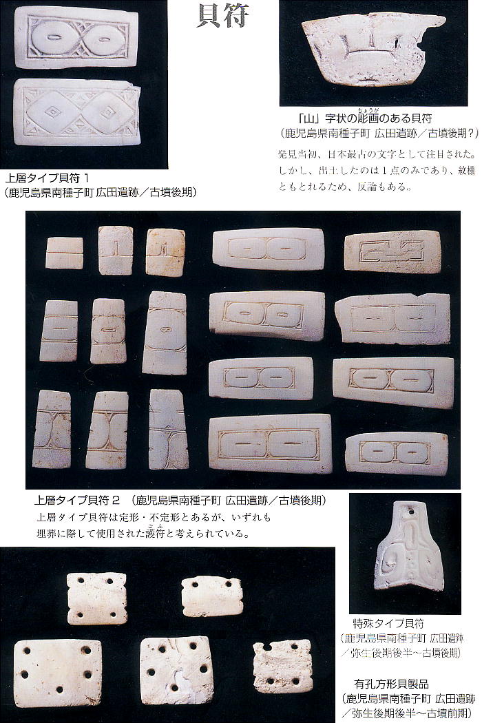 貝製品が発見された。その膨大な貝製品の中には、広田遺跡で初めて見つかった、独特の文様を持つ貝の小板である「貝符」や、