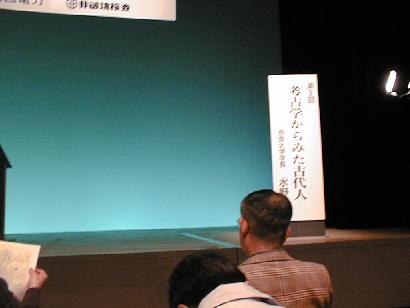 考古学会の講談師、水野学長を待つ聴衆。今回は若い歴史ファンも大勢いた。マスコミの力はすごい。
