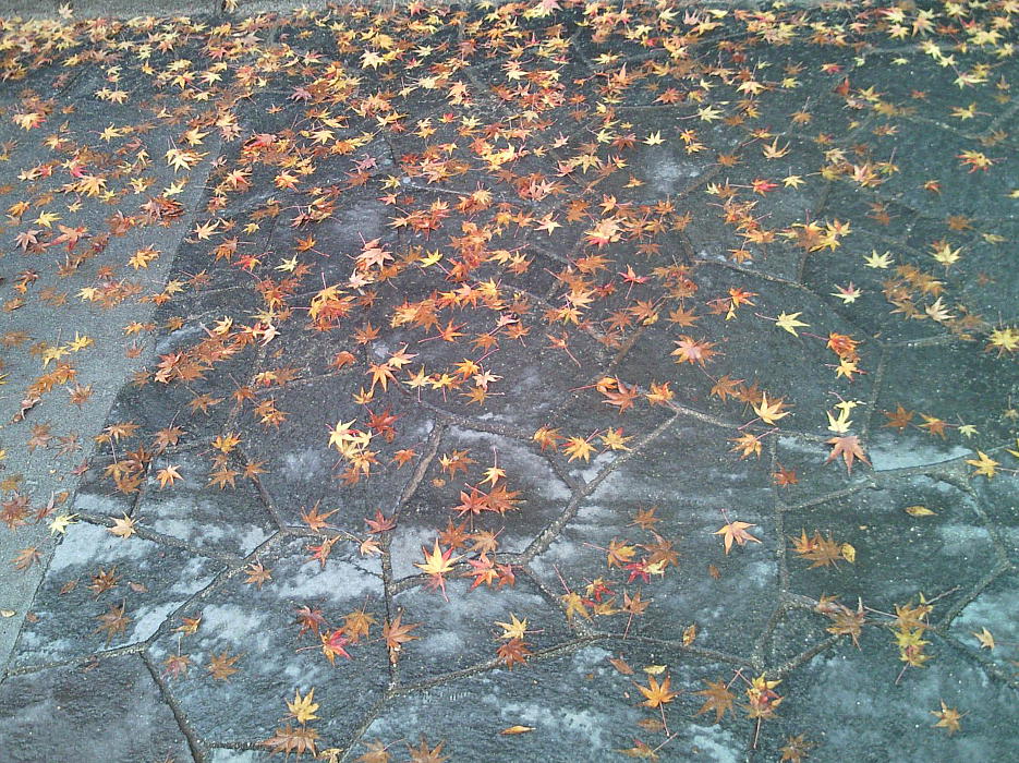 マンション近くの歩道に落ちた紅葉の葉。デザイン的に綺麗だったので選挙記念に写した。