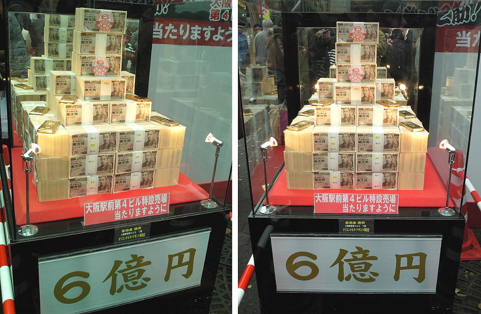 一般庶民が起死回生をはかるにはもうこれしか無い、という事で、帰りに梅田で宝くじを買って帰る。
