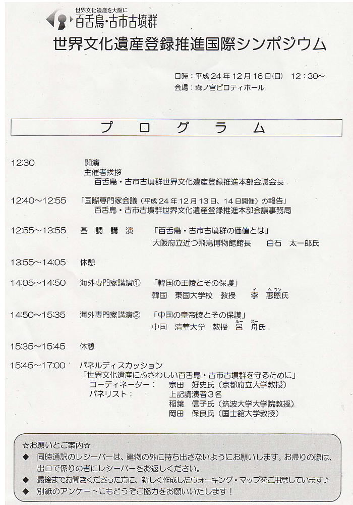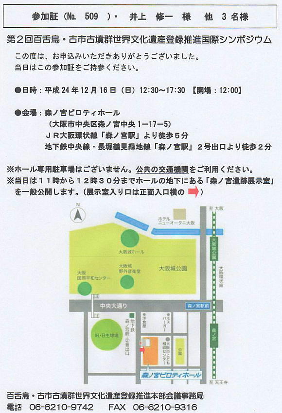 先月、堺のニサンザイ古墳の現地説明会に行ったとき、以下のパンフレットを貰ったので申しこんでいたら抽選に当たった。掲示板