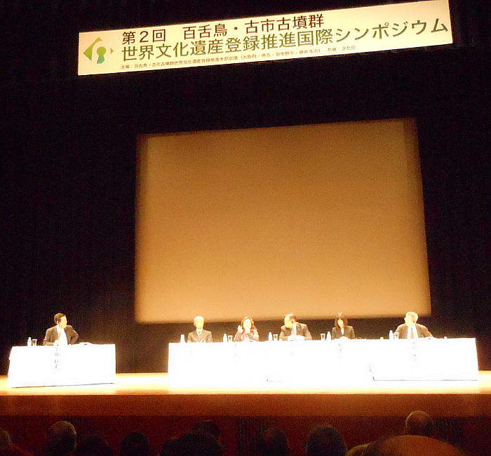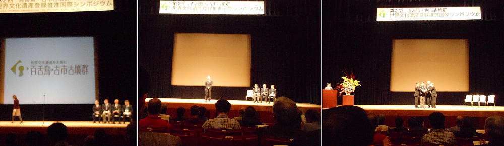 羽曳野市、藤井寺市の各市長だった。代表して副知事が挨拶。何としても大阪府に世界遺産を!と力説して、4人でスクラム。世界