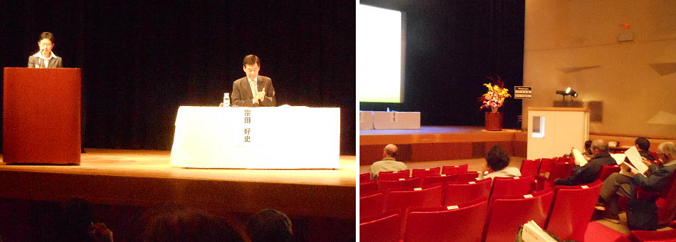 壇上にオッサン4人が座りだして、何かなと思っていたらこのシンポの主催者たち、大阪府松井知事の代理、すなわち副知事、堺市、
