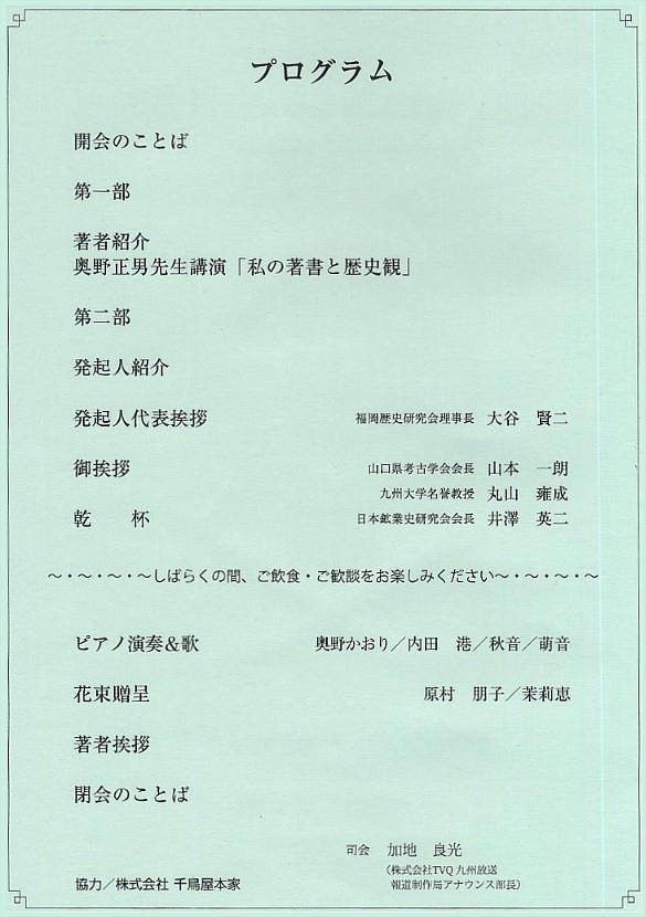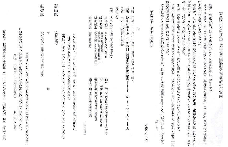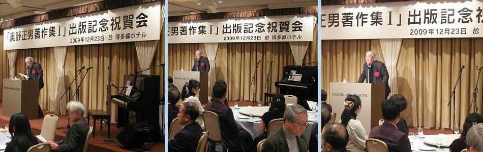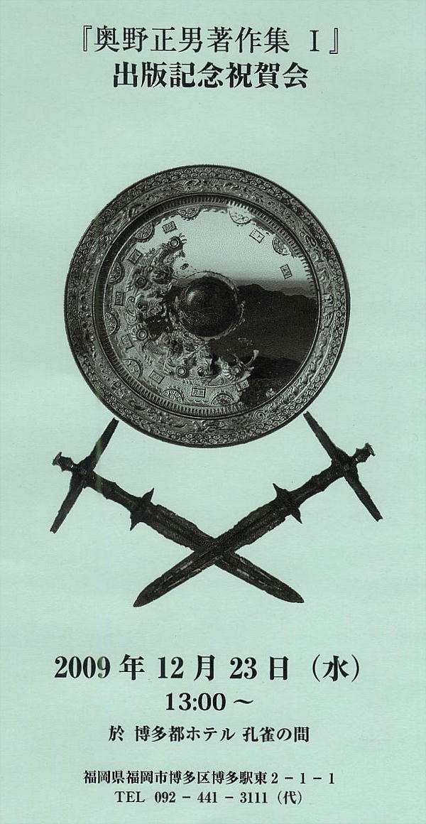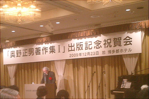 梓書院の主催で、考古学者の「奥野正男著作集 第一巻出版記念祝賀会」が博多で開かれた、私はまだ奥野先生にお目に掛かった