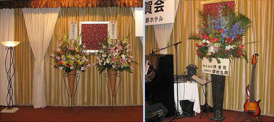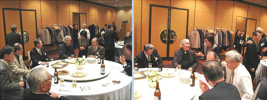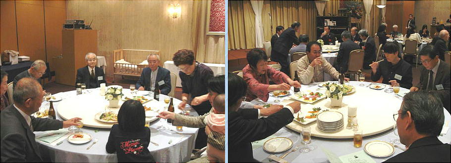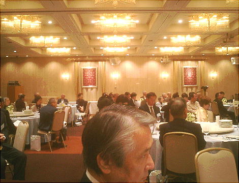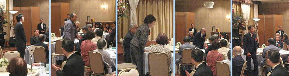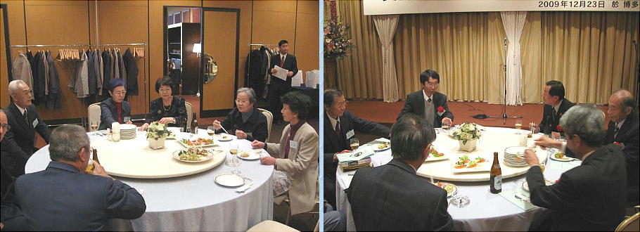 祝賀会開始直前の会場。上左が矢野君。上右は先生のご家族のテーブル(だと思う)。