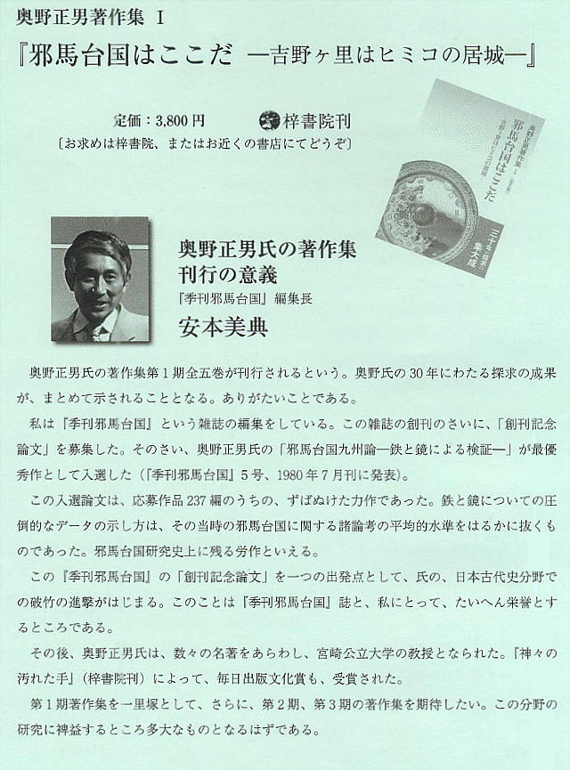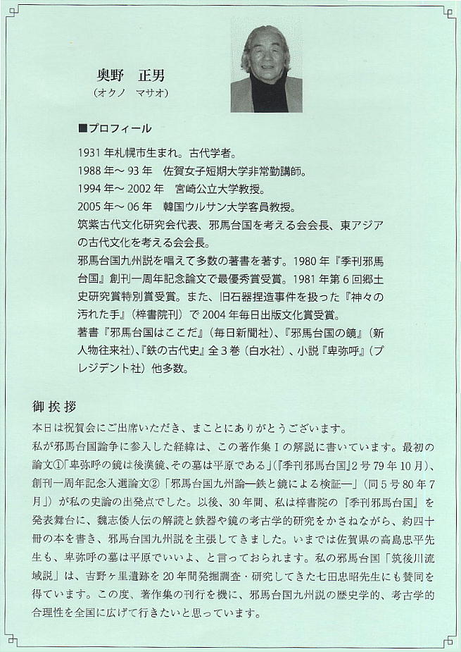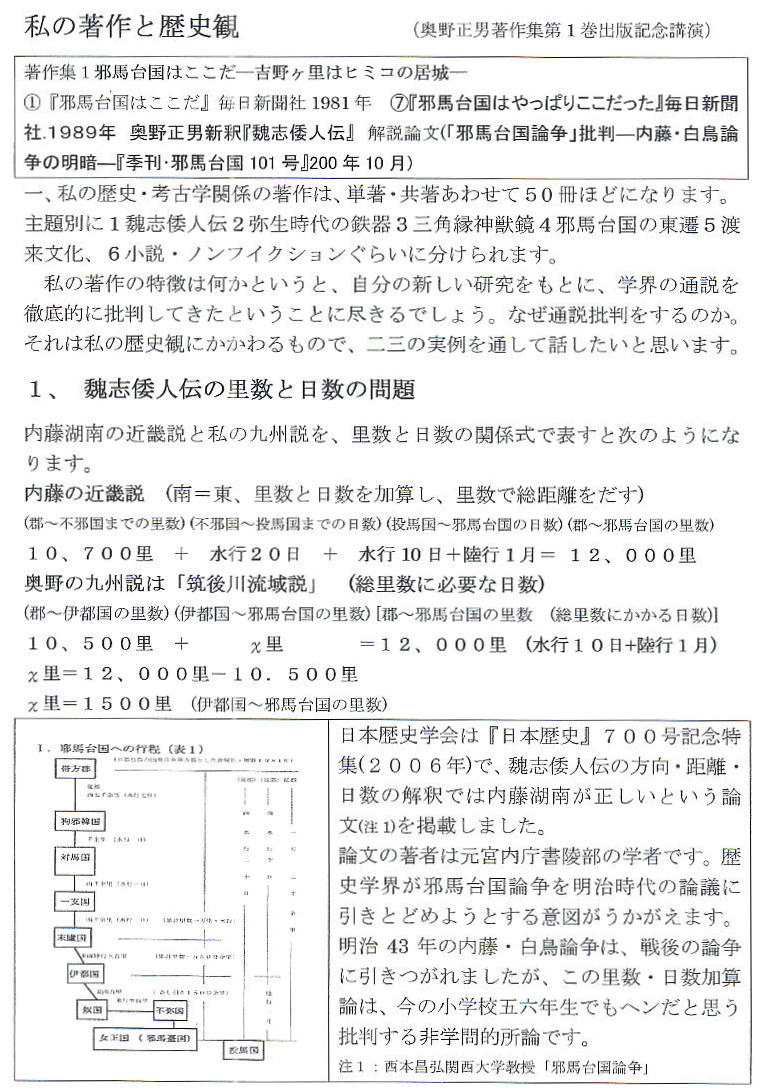邪馬台国の会 第223回 特別講演会 2004.6.13 特別講師 奥野正男先生(邪馬台国の会HPより転載)