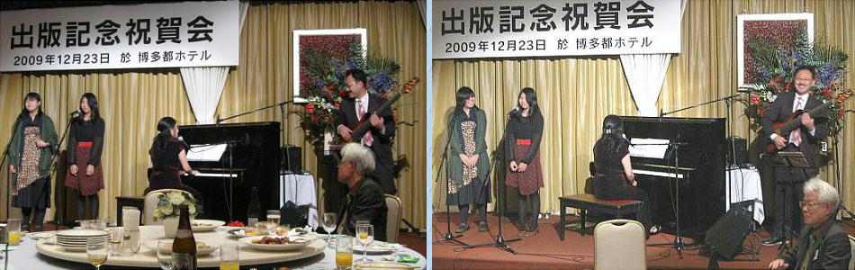 途中、先生の娘さんたち・ご親戚による演奏と歌唱の披露。娘さんはピアニストらしい。