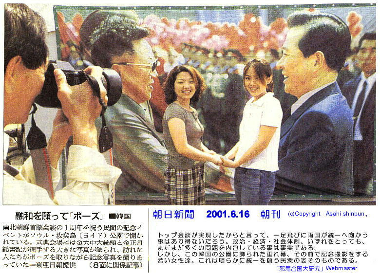 01年現在、ようやく各所で統合の動きが見え始めている。2,000年に及ぶ朝鮮民族の悲願である、真の統一と