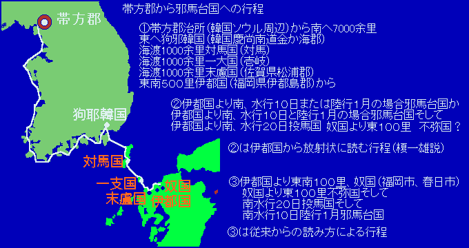 もあるし、肝心の邪馬台国までは距離記載が無く行き方と所要日数だけである。