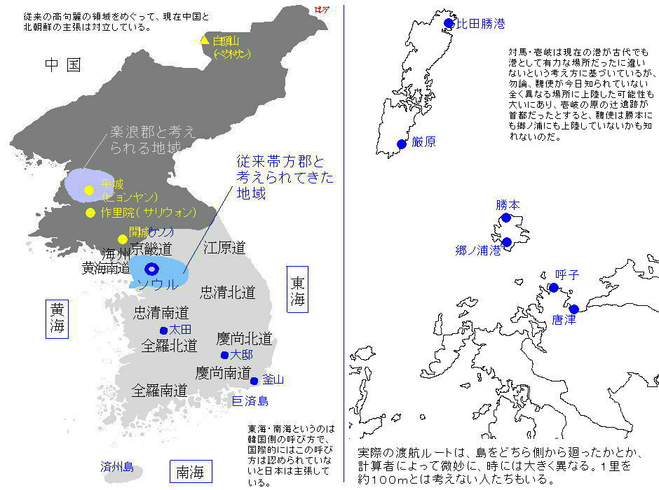 ヤン)では韓国を治めるのに不便だったからではないかとされ、帯方郡は、今の黄海南道もしくは京畿道近辺に有