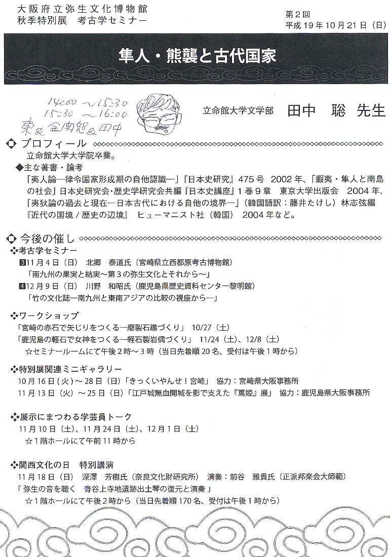 今日の講師田中氏は文献学者らしく、「どこにも書かれていない事は推測でしかない。」という基本姿勢のようだった。