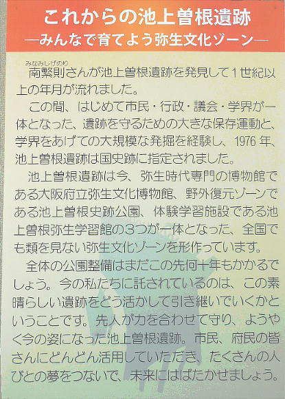 大阪都和泉市の「池上曽根遺跡」内には、「池上曽根遺跡・情報館」という小さな資料館がある。この遺跡の出土品や資料は、