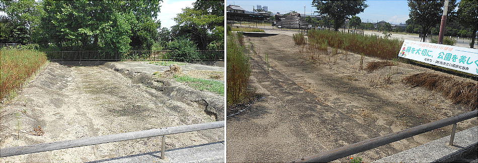 上は池上曽根遺跡之環濠。浅い!