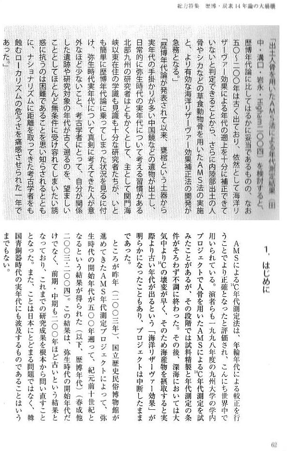 いは年輪年代測定法に歴博が独自に着手する、という研究戦略だってありえたはずなのです)。しかし、そうした生産的な方向と