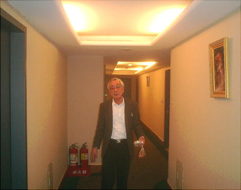 Wifeと二人の一室で、風呂に水を張っていると橋本さんから電話で「反省会をやっているので来ませんか?」との事。隣の111号