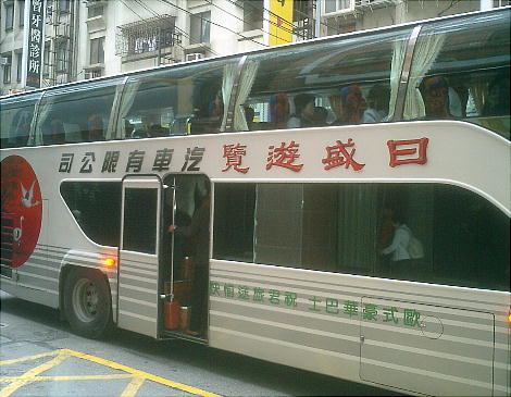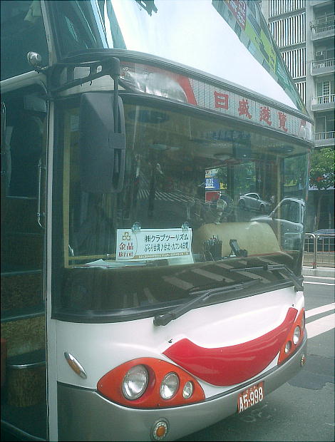 上右がガイドの呉さん。しゃべり出すと停まらない。バスは日本人専用の「日盛遊覧」。