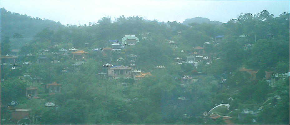 台北市から基隆市へ入り、そこからまた山の中へ入って行く。山肌にへばりつくようにして民家が建っている。