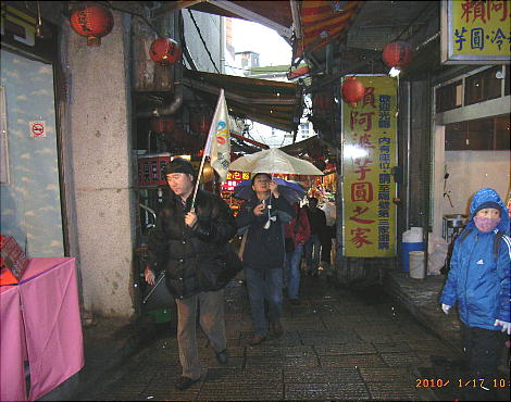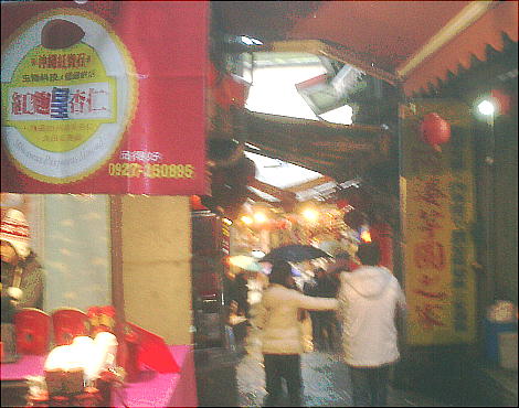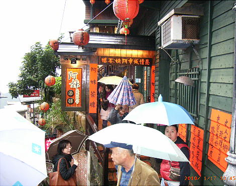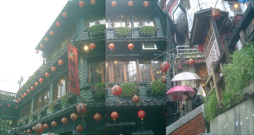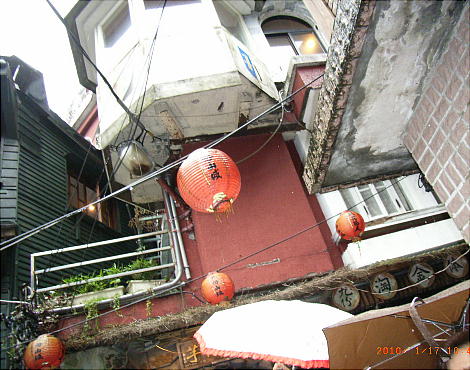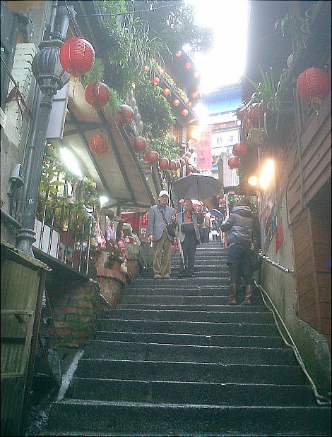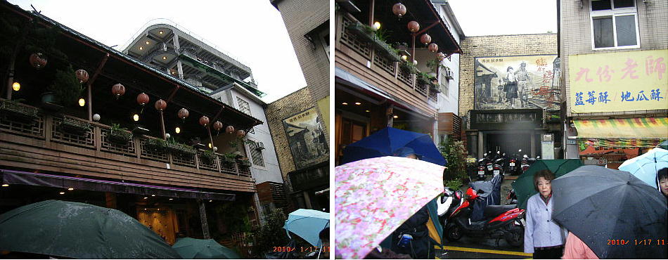 落た喫茶店や茶藝館(ちゃげいかん)、みやげ物屋などが建ち並び、週末には台北などから訪れる多くの人々で賑わっている。