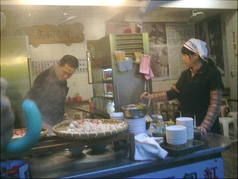 商店街を抜けると、やがて大きな広場のような所へ出る。その前が「阿妹茶楼」と言う茶店である。「千と千尋の神隠し」で「湯婆