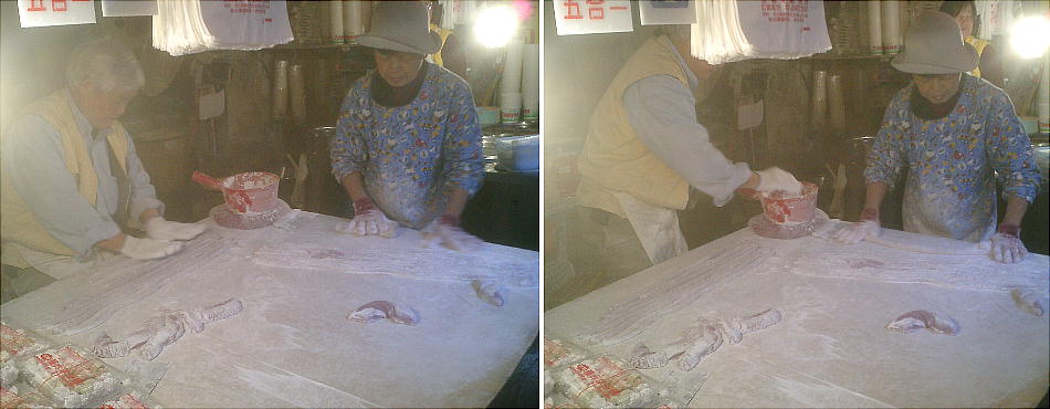 店の軒先で作っている。これをそのまま店先に並べてるんだろうね。それともどっかへ卸してるのかな。