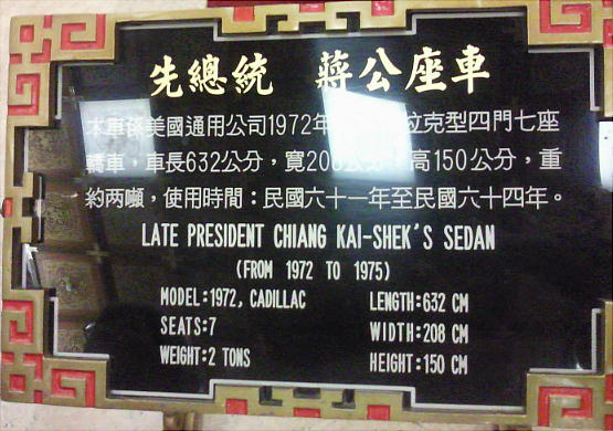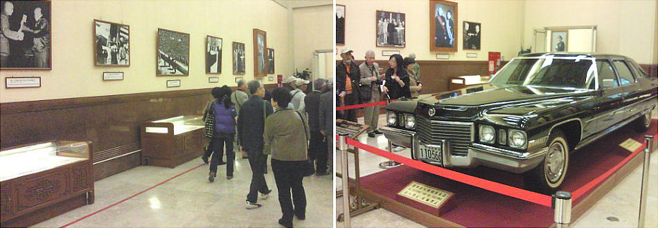 中央通路 - 総統?介石が生前乗用した2台のキャディラックと公園の模型が展示してある。