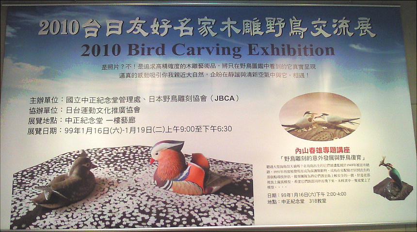 建物の一角でバードカービング展をやっていた。日台共同の催しのようで楽しかった。
