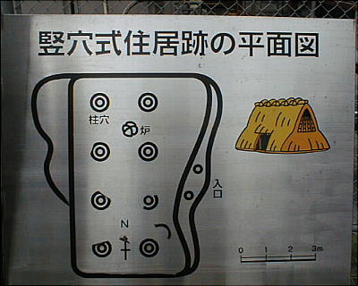 縦穴式住居は長辺8.3m、短辺5.8mの長方形のもので、住居内には柱穴が3ヶ所あり、中には炉跡と考えられる石組
