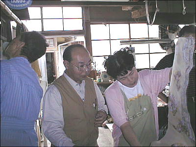 くと入っていくので驚いて覗き込んだら、「丹後ちりめん」の織元さんの家だった。昔ながらの織り場のなかに、昔ながら