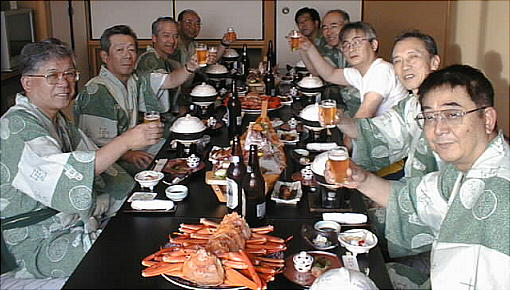 旅館は近代的なホテル造りだが、仕様は旅館である。部屋から日本海が眺められ、屋上の露天風呂からは日本海に沈む夕陽