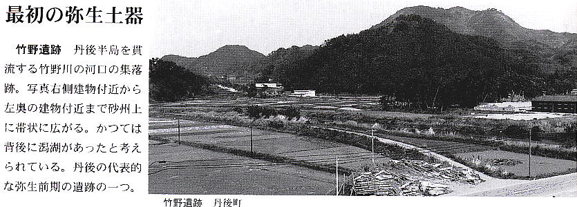 竹野川の河口右岸の砂丘上にある竹野遺跡。弥生時代前期から中世までの土器やその他遺物が、各時代にわたって出土する